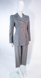 This Yves Saint Laurent suit is composed of a grey wool blend. Features a beautiful classic double breasted blazer and a wonderful cropped trouser. In excellent vintage condition (some signs of wear due to age). Made in France.