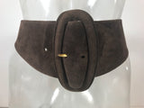 Brown Suede Leather belt made by Donna Karan. Pre-owned in great condition. Gently worn with no signs of significant wear. Interior has some spotting-not visible when worn. (Review Pictures for Details).